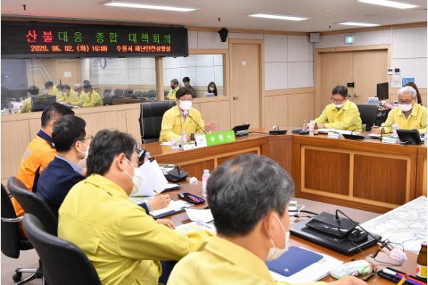 수원시는 2일 시청 재난안전상황실에서 ‘산불 대응 종합대책회의’를 열고, 산불 대응 개선 방안을 논의했다. 염태영 수원시장이 주재한 이날 회의에는 최광열 공원녹지사업소장, 양경환 도시안전통합센터장, 수원소방서·수원남부소방서, 수원국유림관리소 관계자 등이 참석했다.