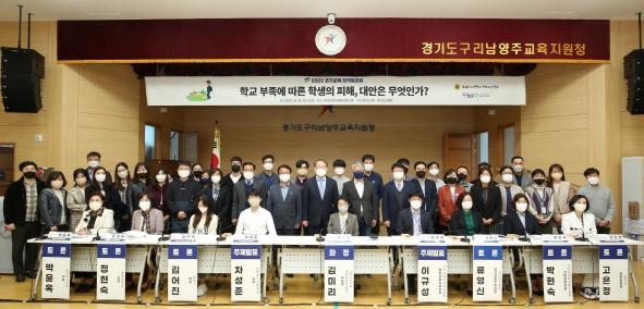 [한국뉴스타임=편집국] 경기도의회 교육행정위원회 김미리 위원장(더불어민주당, 남양주2)이 좌장을 맡은 '학교 부족에 따른 학생의 피해, 대안은 무엇인가?' 토론회가 28일 오후 3시 구리남양주교육지원청 2층 대강당에서 조응천 국회의원 등이 참석한 가운데 성황리에 개최됐다.
