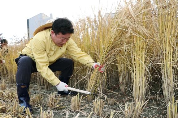 [한국뉴스타임=편집국] 서태원 군수는 10월 31일 조종면 소재지 벼농가(친환경 쌀연합회 회장 윤복영 농가) 및 사과농가(유풍농원 박경철 농가) 수확 현장을 방문해 직접 콤바인에 탑승해 벼베기 작업을 시연했으며 사과 따기를 했다.
