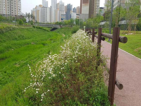 김포시(시장 정하영)는 지난 달 구래동 호수마을 가마지천 산책로를 따라 호수공원까지 약 1.5㎞ 구간에 1억 5천만 원의 예산을 투입해 교목 115주 관목 20,000주, 초화류 종자 100kg을 식재하는 등 가마지천 주변 산책로를 새롭게 정비했다.
