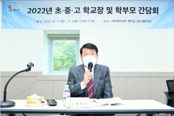 [한국뉴스타임=편집국] 백경현 구리시장은 지난 10월 17일부터 11월 1일까지 관내 32개 초·중·고 학교장 및 학부모들을 만나 구리시 주요 교육사업을 안내하고 교육 현안에 대해 논의하는 학교 간담회를 개최했다.