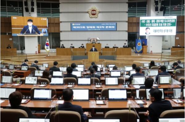 [한국뉴스타임=편집국] 경기도의회 도시환경위원회 성기황 의원(더불어민주당, 군포2)은 3일 제365회 정례회 3차 본회의에서 5분 자유발언을 통해 수리산 도립공원 관광 활성화 방안을 제안했다.