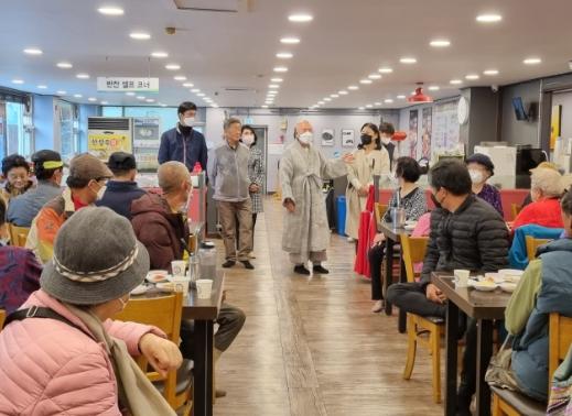 [한국뉴스타임=편집국] 남양주시 진건퇴계원행정복지센터는 3일 명덕사의 주지 우정스님이 진건읍 경로당 임원 및 독거 어르신들에게 점심 식사를 대접하는 자리를 마련했다고 밝혔다.