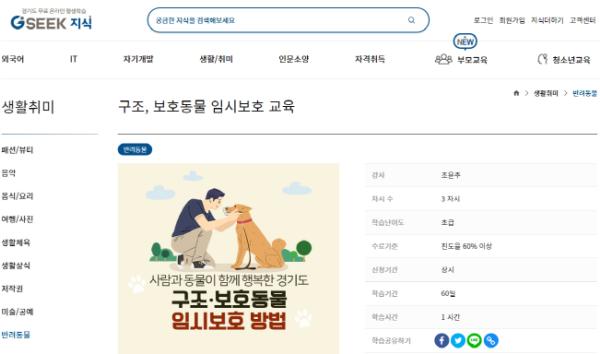 경기도는 ‘경기도 무료 온라인 평생학습 플랫폼 지식(GSEEK)’을 통해 ‘구조·보호동물 임시보호 강좌’를 개설해 운영한다고 4일 밝혔다.