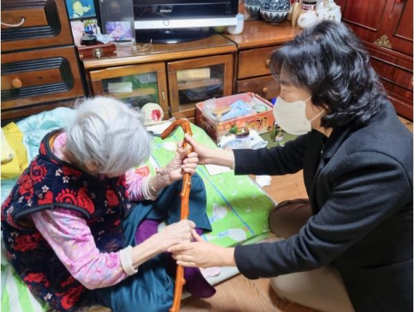 좌의1리 마을 이장과 함께 올해 100세를 맞이한 어르신 댁을 방문해 건강과 장수를 기원하는 의미를 담은 장수 지팡이와 함께 생필품 등을 전달했다.