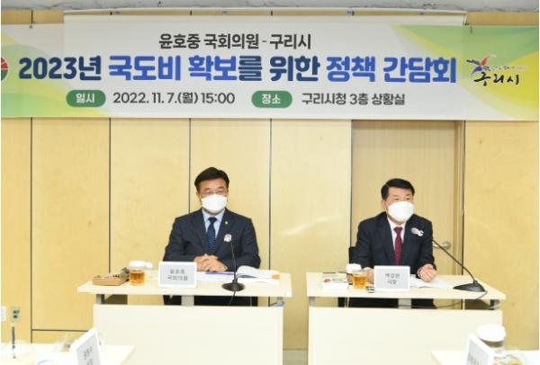 [한국뉴스타임=편집국] 구리시는 11월 7일 윤호중 국회의원과 함께 2023년도 국도비 확보를 위한 정책 간담회를 개최하고 초당적 협력체계를 구축했다. 이날 간담회에는 구리시의회 권봉수 의장을 비롯한 의원들도 참석했다.