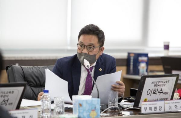 [한국뉴스타임=편집국] 경기도의회 교육기획위원회 이학수 의원(국민의힘, 평택5)은 11월 7일(월) 경기도의회 제365회 정례회 중 김포교육지원청에서 열린 부천ㆍ양평ㆍ김포교육지원청을 대상으로 한 경기도교육청 행정사무감사에서 시?군과 대응 투자 예산 사업으로 학교 시설공사 진행 시 과도한 행정 업무 부담 문제를 제기했다.