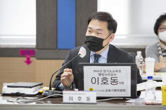 [한국뉴스타임=편집국] 경기도의회 교육기획위원회 이호동 의원(국민의힘, 수원8)은 11월 7일(월) 경기도의회 제365회 정례회 중 김포교육지원청에서 열린 부천ㆍ양평ㆍ김포교육지원청을 대상으로 한 경기도교육청 행정사무감사에서 학교 폭력 갈등 조정 센터를 통해 학교 폭력사안의 여부를 가릴 필요가 있음을 지적하고 학부모를 포함한 학교 구성원 전체의 공감대 형성의 중요성을 강조했다.
