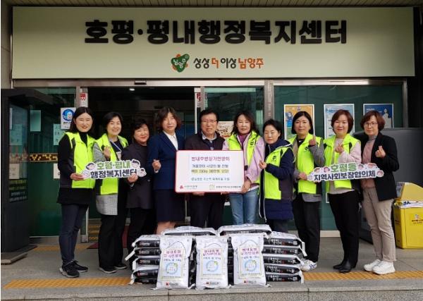 [한국뉴스타임=편집국] 남양주시 호평평내행정복지센터는 지난 7일 평내호평상가번영회가 호평동 지역사회보장협의체에 80만 원 상당의 백미 200kg을 전달했다고 밝혔다.