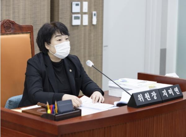 먼저, 지미연 위원장은 사전에 요구한 규제개혁담당관 소관 업무 도비지원 표지판 설치 현황 자료제출에 대해 소관부서가 현재 운영하고 표지판을 사진으로 찍어 제출할 수 있음에도 불구하고 한쪽 분량의 샘플 양식만 무성의하게 제출한 것을 강도 높게 비판했다.