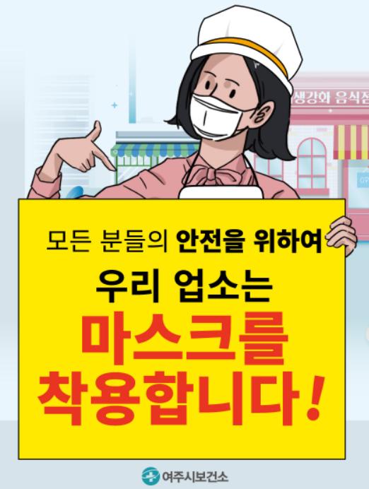 여주시(시장 이항진)는 6월부터 음식점 영업주·종사자들이 마스크 착용을 의무화해 고객의 안전을 지킬 수 있도록 강화된 현장점검과 홍보를 실시하는 등 적극적인 대응에 나섰다.