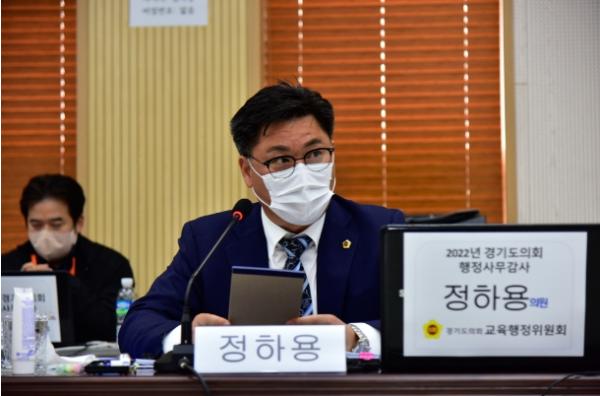 [한국뉴스타임=편집국] 경기도의회 교육행정위원회 정하용 의원(국민의힘, 용인5)은 8일 경기도교육청 연천, 구리·남양주교육지원청에 대한 2022년도 행정사무감사 제1분반 활동에서 교육가족을 위한 업무추진비 활용으로 업무추진의 내실을 기해줄 것과 집행내역 공표에 있어서도 원칙에 따른 충실한 정보공개로 도민의 알 권리 보장에 나설 것을 촉구했다.