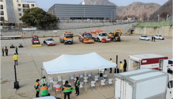 이번 훈련은 폭설대응 제설장비 기능 조작 훈련뿐 아니라 도로가 전기차 방전 상황을 설정하여 이동불가에 따른 견인 조치 훈련도 실시했다.