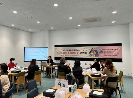 ‘내가 그리는 우리 마을’이라는 주제로 진행된 이번 포럼에는 지역 내 봉사 단체와 주민 등 20여 명이 참여해 화도 지역의 마을 돌봄 체계 구축에 대한 방해 요인을 찾아보고, 해결 방안을 모색하며 더 촘촘한 돌봄 체계를 구축하기 위한 다양한 의견을 공유했다.