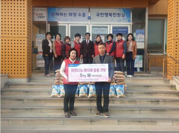 [한국뉴스타임=편집국] 포천시 소흘농협 봉사단은 10일 바자회 수익금으로 겨울철 어려운 이웃을 위해 150만 원 상당의 쌀(5kg) 80포를 경기사회복지공동모금회로 기탁했다.