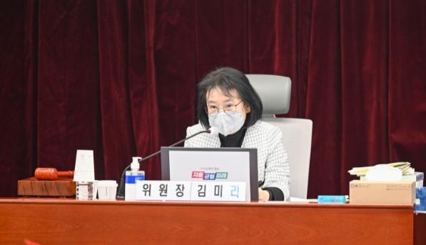 [한국뉴스타임=편집국] 경기도의회 교육행정위원회 김미리 위원장(더불어민주당, 남양주2)은 9일 경기도교육청 북부청사에서 실시된 미래교육국·운영지원과·평생교육학습관·중앙교육도서관·성남교육도서관·과천교육도서관·화성교육도서관·의정부교육도서관·경기도교육복지종합센터에 대한 2022년 행정사무감사에서 경기도 교육복지우선지원사업의 지난 10년간의 퇴보사항을 지적하고, 사업의 교육적 의미를 명확히 찾아 원점에서 재검토할 것을 주문했다.