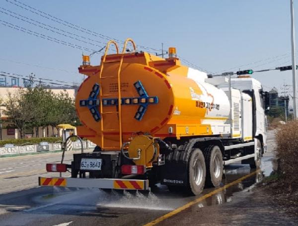 시는 미세먼지 및 폭염주의보 발령 시, 인구 밀집지역과 차량 통행이 많은 강변로, 중앙로, 평화로 등의 주요 도로에 살수차 1대를 투입해, 도로 살수를 실시한다. 12.4톤의 고압살수차량이 하루 평균 30km의 거리를 운행하며, 도로 살수작업으로 인한 물 튀김이나 시민 불편을 최소화하기 위해 살수차량을 저속(15km/h) 운행한다.