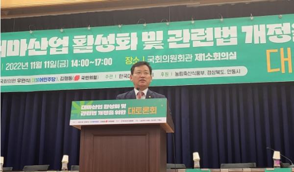 국민의힘 김형동(경북 안동·예천) 국회의원은 더불어민주당 우원식(서울 노원을) 국회의원과 함께 11일 국회 의원회관 제1소회의실에서 '대마산업 활성화 및 관련법 개정을 위한 대토론회'를 개최했다.
