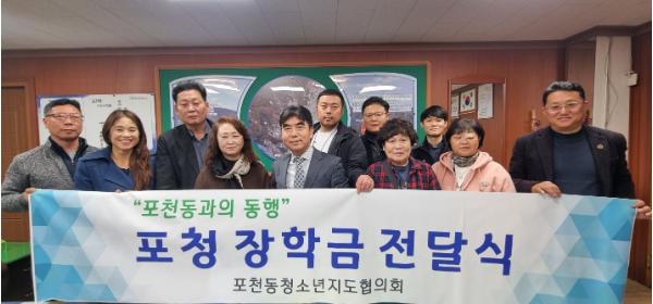[한국뉴스타임=편집국] 포천시 포천동 청소년지도협의회는 지난 10일 관내 중·고등학교에 재학 중인 저소득 가정의 학생 22명에게 ‘포청장학금’으로 총 220만 원을 전달했다.