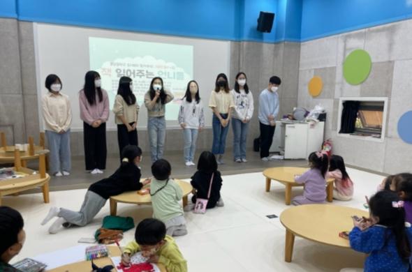 ‘책 읽어 주는 언니들’은 풍양중학교 도서부와 연계한 재능 기부 프로그램으로, 청소년들은 도서관에 방문하는 어린이들에게 그림책을 읽어 주고 책 내용과 관련된 다양한 독후 활동을 하며 책을 매개로 교류하는 시간을 가졌다.