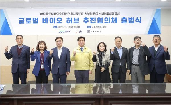 염태영 경제부지사는 “경기도는 K-바이오밸리(송도-파주?고양?김포?시흥-수원?성남-화성-오송)를 구축해 바이오산업을 글로벌 첨단산업으로 육성하고자 한다”며 “추진협의체를 통해 세계보건기구 글로벌 바이오 캠퍼스 유치뿐만 아니라, 글로벌 바이오기업 유치, 기술기반 창업지원 등 경기 서부권을 글로벌 의료바이오 전략 거점으로 조성하는 데 적극 지원하겠다”고 말했다.