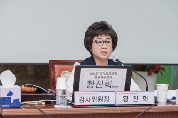 [한국뉴스타임=편집국] 경기도의회 교육기획위원회 황진희 위원장(더불어민주당, 부천4)은 11월 14일 경기도의회 제365회 정례회 중 경기도교육청 대회의실에서 열린 경기도교육청 총괄 행정사무감사에서 경기 평화·통일교육센터 건립 사업과 촉법소년의 학교폭력에 대한 교육적 대처의 필요성에 관련하여 질의했다.