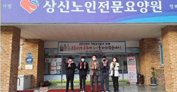 [한국뉴스타임=편집국] 가평군 가평청소년문화의집 ‘꿈나래’ 청소년방과후아카데미는 지난 11월 14일 지역사회참여활동의 일환으로 상신요양원을 방문하여 어르신을 위해 직접 만든 안마봉 20개를 기증했다.
