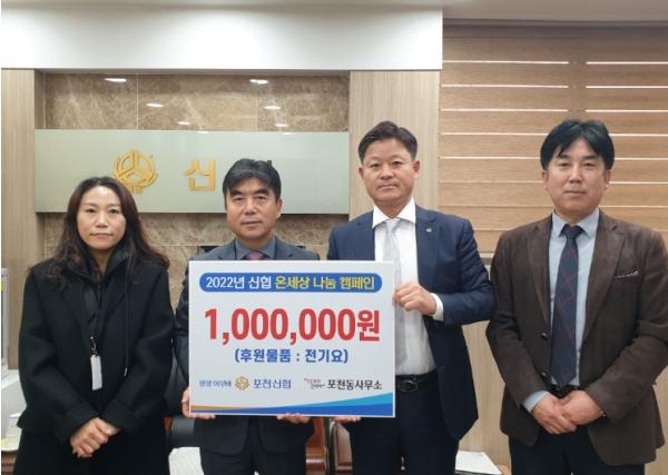 [한국뉴스타임=편집국] 포천시 포천신용협동조합는 지난 14일 복지사각지대의 어려운 분들에게 전달해 달라며 전기요 20채(100만원 상당)를 포천동 행정복지센터에 기탁했다.