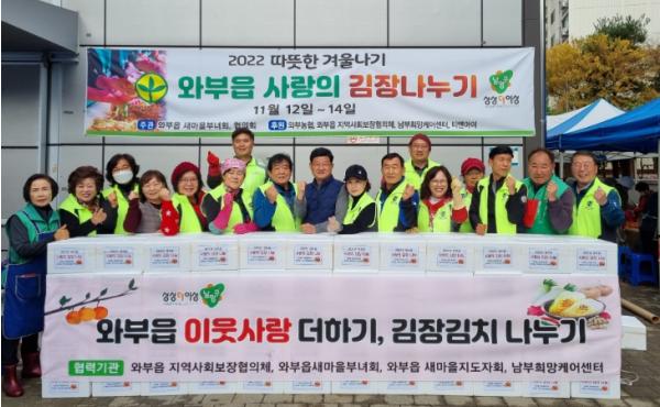 이번 와부읍 ‘사랑의 김장김치 나눔’행사는 와부읍 새마을지도자회·새마을부녀회가 주관하고 지역사회보장협의체, 아파트 생활개선회 등이 협력해 진행됐으며, 직접 수확한 배추와 무를 사용해 절이고 버무리며 이웃 사랑의 마음을 듬뿍 담았다.