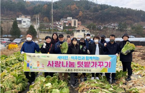 사랑나눔텃밭 가꾸기 사업은 2022년 주민자치우수사업의 일환으로 고모리, 이곡리 소재의 텃밭에서 소흘읍 주민자치위원회 위원들이 직접 텃밭을 가꾸고 농작물을 재배·수확해 나눔을 실천하는 사업이다. 수확한 농작물은 연말 김장김치를 담가 관내 새터민, 다문화가정 등에 전달할 예정이다.