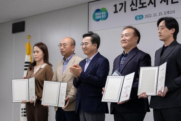 김동연 경기도지사는 15일 경기도청에서 열린 ‘1기 신도시 시민협치위원회 위촉식’에 참석해 시민위원 대표들에게 위촉장을 수여하고 “경기도는 1기 신도시 주민들의 안전과 재산권 보호를 위해 노후화된 신도시 재건축이나 리모델링에 최선을 다하겠다고 약속했다”며 이같이 말했다.
