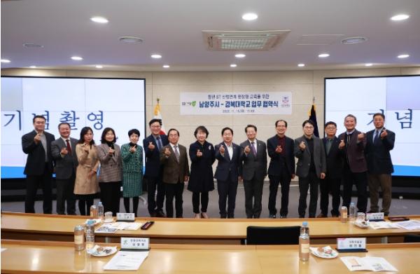 [한국뉴스타임=편집국] 남양주시는 15일 진접읍 경복대학교 남양주캠퍼스 국제회의실에서 경복대학교와 청년 대상 6T 산업 연계 현장형 교육 사업 이행을 위한 업무 협약(MOU)을 체결했다.