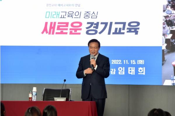 [한국뉴스타임=편집국] 임태희 교육감이 15일 경인교육대학교 경기캠퍼스에서 예비교사들과 만남의 자리를 갖고 ‘경기 미래교육의 방향’을 주제로 특강을 했다.