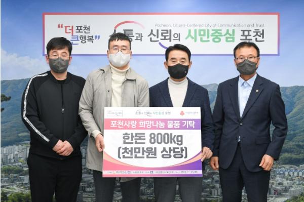 (사)대한한돈협회 포천지부는 15일 경기사회복지공동모금회를 통해 포천시에 1,000만 원 상당의 한돈(800kg)을 기탁했다.
