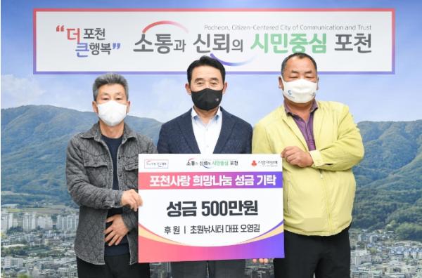 [한국뉴스타임=편집국] 포천시는 11일 초원낚시터 오영길 대표가 경기사회복지공동모금회를 통해 이웃돕기 성금 500만 원을 기탁했다고 밝혔다.