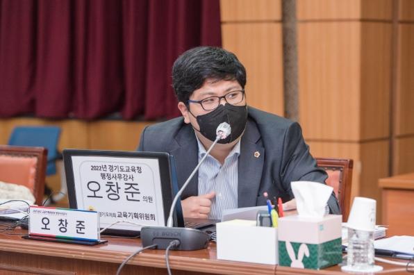 오창준 의원은 “도교육청에서 시행하는 통학버스 지원 사업 중 돌아오는 농어촌 지원사업, 적정규모학교 육성 사업과는 달리 유독 '경기도 학생 통학 지원 조례'에 근거한 경기도 통학지원 사례 중 입찰이 유찰되거나 계약 시점이 1학기도 아닌 2학기가 되어서야 체결되는 등 계약 지연 사례가 상당히 많다”고 문제점을 지적했다. 동시에, 각 사업별로 지원되는 통학버스 지원 금액도 동일해야 하는데 그렇지 못한 문제도 지적하면서 왜 동일 사업인데도 이렇게 사업의 종류에 따라 운영방식이 차이가 나는지 따져 물었다.
