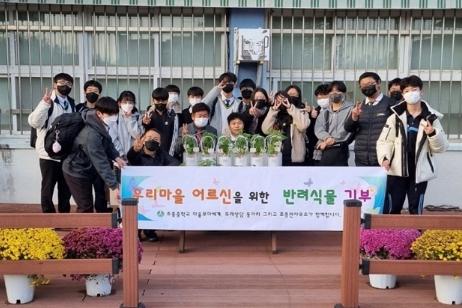 이번 기부활동은 조종면 독거노인분들에게 반려식물을 제공함으로써 외롭고 적적하지 않기를 바라는 마음을 담았다. 또한 따뜻한 메시지를 학생들이 푯말에 직접 작성하여 함께 전달했다.
