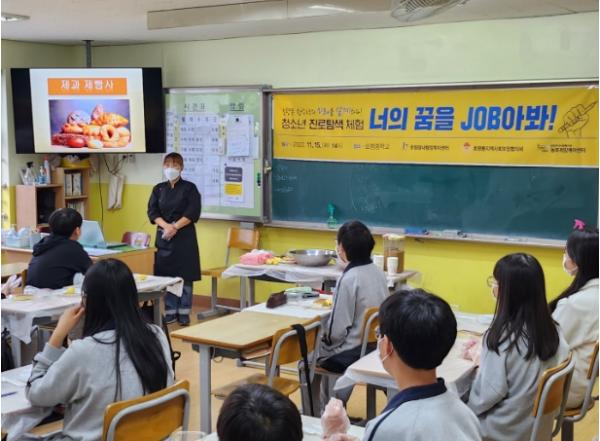 이번 행사는 사전에 호평중학교 학생들을 대상으로 실시된 직업 체험 프로그램에 대한 수요 조사 결과를 바탕으로 학생들이 원하는 직업 2개(바리스타, 제과·제빵)를 직접 학교에서 체험해 보는 방식으로 진행됐으며, 학생들의 눈높이에 맞춰 직업 정보를 제공하고 실질적인 직업 세계의 이해를 돕는 시간이 됐다.