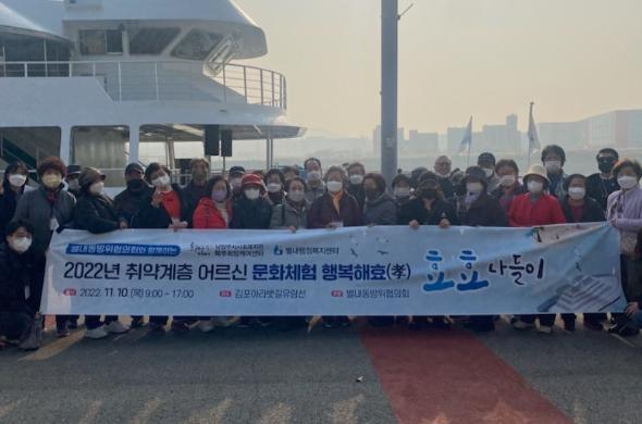 [한국뉴스타임=편집국] 남양주시 사회복지관 북부희망케어센터는 지난 10일 별내행정복지센터와 공동 주최해 별내동 취약계층 33명의 어르신을 모시고 경인아라뱃길로 가을 나들이를 진행했다고 밝혔다.