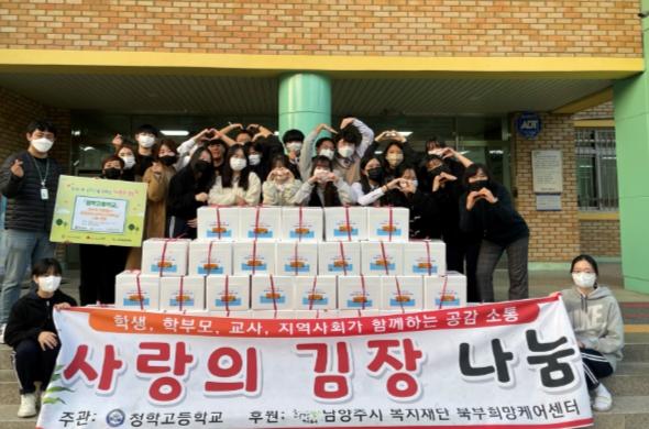 지난 2013년부터 별내면 거주 저소득 노인 및 주민을 위해 봉사와 나눔을 꾸준하게 실천하고 있는 청학고등학교는 올해에도 지역에 김장김치가 필요한 저소득 30가구를 위해 직접 재배한 배추로 김장을 담가 나눔을 실천했다.