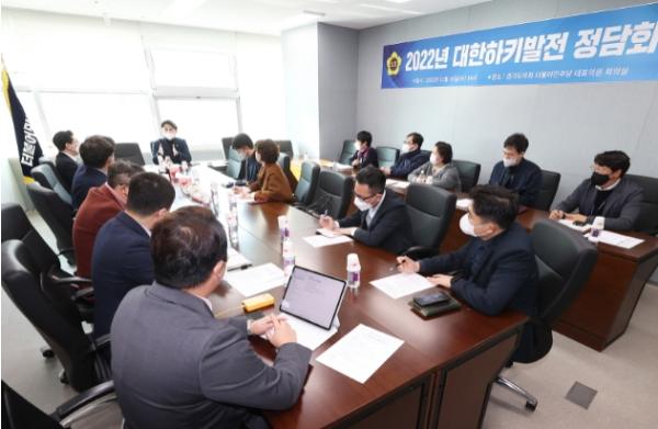 [한국뉴스타임=편집국] 경기도의회 문화체육관광위원회 황대호 부위원장(더불어민주당, 수원3)은 16일 교섭단체 회의실에서 매원중학교 하키부 정상화를 위한 ‘2022년 대한하키 발전 정담회’를 개최했다.