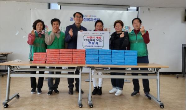 [한국뉴스타임=편집국] 구리시 갈매동 행정복지센터는 지난 15일 갈매동 새마을지도자협회(회장 김치운)와 새마을부녀회(회장 유경재)로부터 추운 겨울을 맞는 독거 어르신들을 위한 내복(50벌)을 전달받았다.