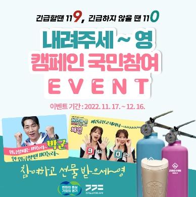 경기도 소방재난본부는 17일부터 다음 달 16일까지 한 달간 성숙한 신고 문화 조성을 위한 비긴급 신고자제 ‘내려주세~영’ 캠페인 국민참여 이벤트를 전개한다고 밝혔다.