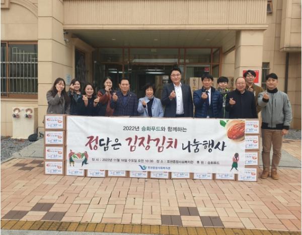 [한국뉴스타임=편집국] 포천종합사회복지관은 지난 16일 승화푸드, 이마트 포천점 등에서 후원한 김장김치를 지역 내 저소득층 100가구에 나누는 행사를 진행했다.