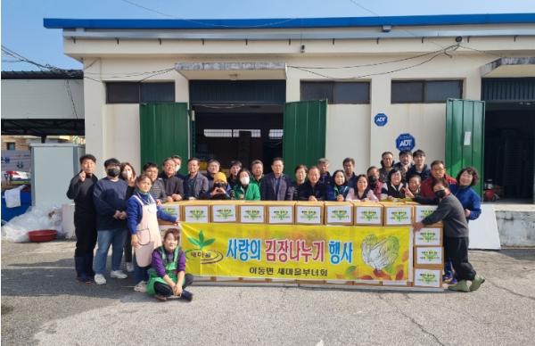 송영범 이동면장은 “갑자기 추워진 날씨에도 훈훈한 나눔을 실천해 주신 새마을회에 감사드린다.”면서 “회원들의 정성을 모아 담근 김치가 이웃들에게 보탬이 되길 바란다.”고 말했다.