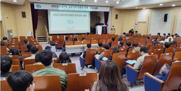 [한국뉴스타임=편집국] 경기도가 산하 공공기관의 자체감사업무 지원을 위해 18일 경기도인재개발원 다산홀에서 ‘2022년 공공기관 맞춤형 회계·감사 교육’을 실시했다.