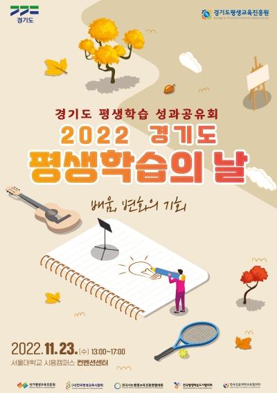 [한국뉴스타임=편집국] 경기도평생교육진흥원이 2022년 경기도 평생학습 성과공유를 위해 11월 23일 서울대학교 시흥캠퍼스 컨벤션센터에서 ‘2022년 경기도 평생학습의 날’ 행사를 연다. 같은 날 평생교육 정기포럼과 문해교육 성과공유회 및 세미나도 함께 진행된다.