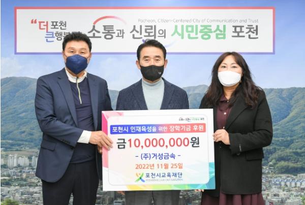 (재)포천시교육재단은 지난 25일 ㈜거성금속에서 장학기금 1,000만 원을 기탁했다고 밝혔다.