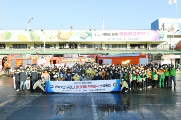 [한국뉴스타임=편집국] 구리시는 25일 구리농수산물도매시장에서 시와 유관기관 합동으로 복합 재난대응 역량강화를 위한 '2022년 재난대응 안전한국훈련'을 실시했다.