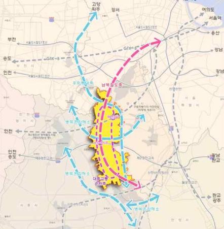 국토부 발표에 의하면 금번 지구지정 고시에 따라 광명시흥신도시에는 여의도 면적 4.3배에 달하는 면적에 7만여 가구가 공급될 예정인데, 서울 도심으로 20분대 진입이 가능하도록 광명시흥을 가로지르는 광명시흥선을 신설하여 GTX-B(신도림역, ‘30년 개통 예정)와 연결하는 철도중심의 대중교통체계를 구축하게 된다.